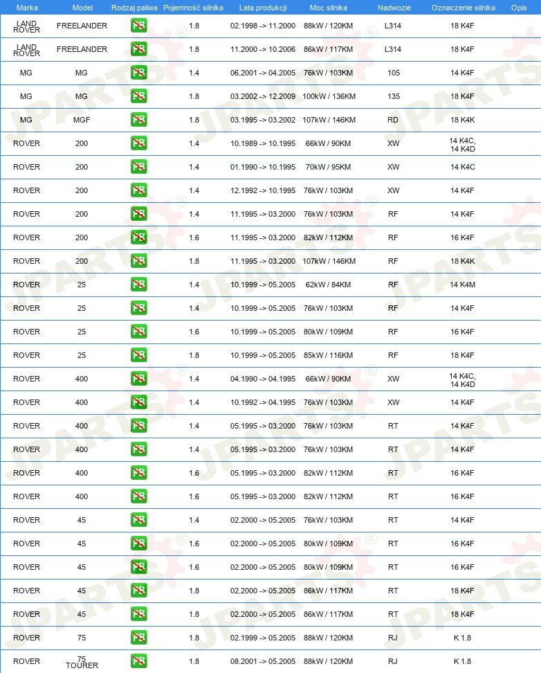 | Artykuł uzupełniający / informacja uzupełniająca: | z wałkiem rozrządu z pierżcieniami uszczelniającymi |