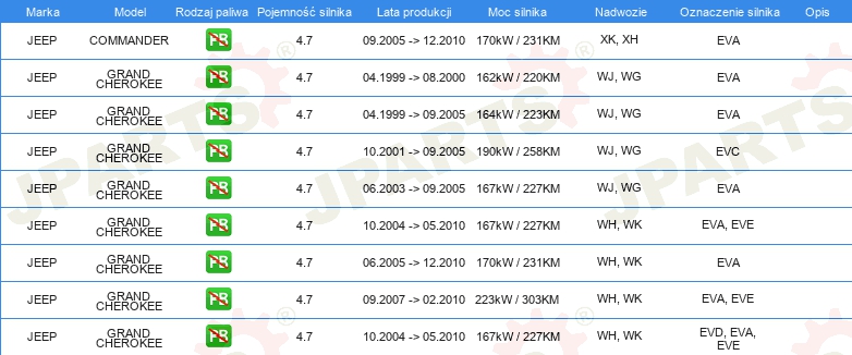 KOMPLET USZCZELEK GÓRA SILNIKA