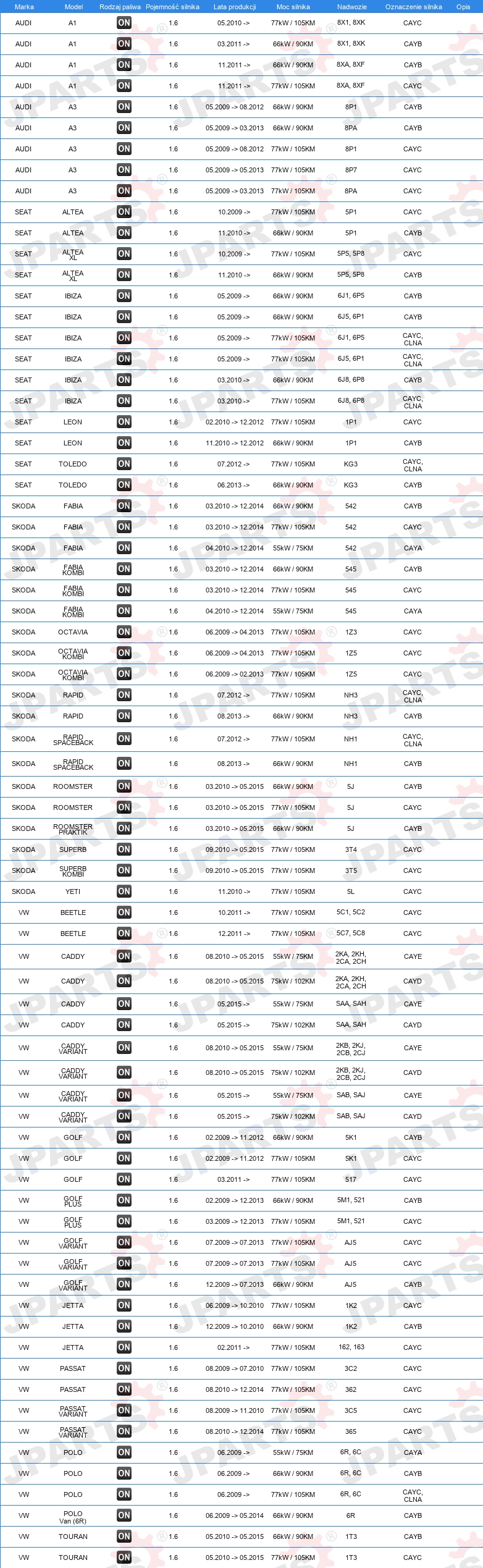 | DLA NUMERU OE: | 03L 103 475 C |