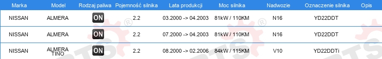 | Artykuł uzupełniający / informacja uzupełniająca: | bez uszczelki głowicy cylindra |