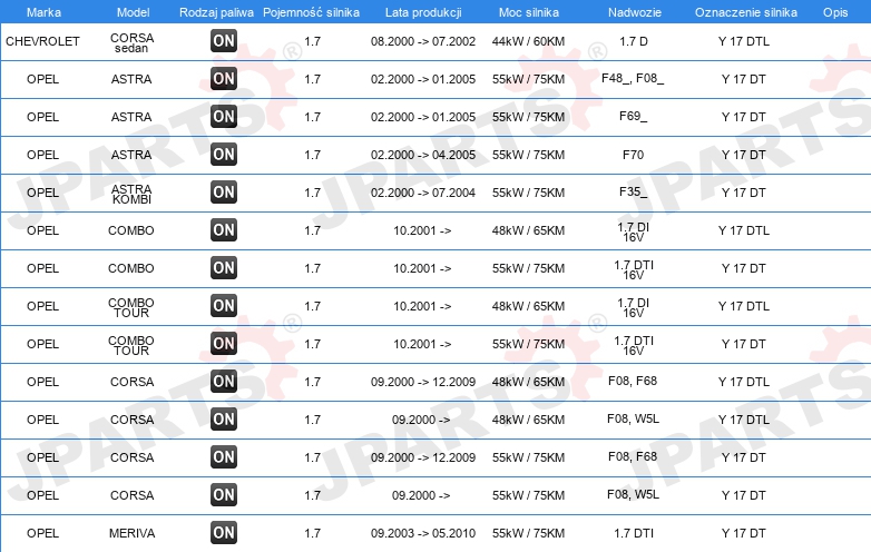 | Artykuł uzupełniający / informacja uzupełniająca: | bez uszczelki głowicy cylindra |