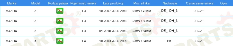 Informacje o części