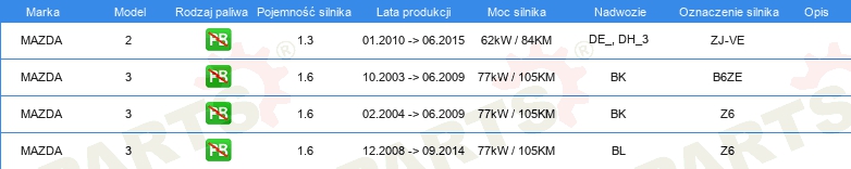 Informacje o części