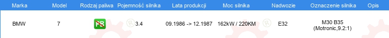 Informacje o części