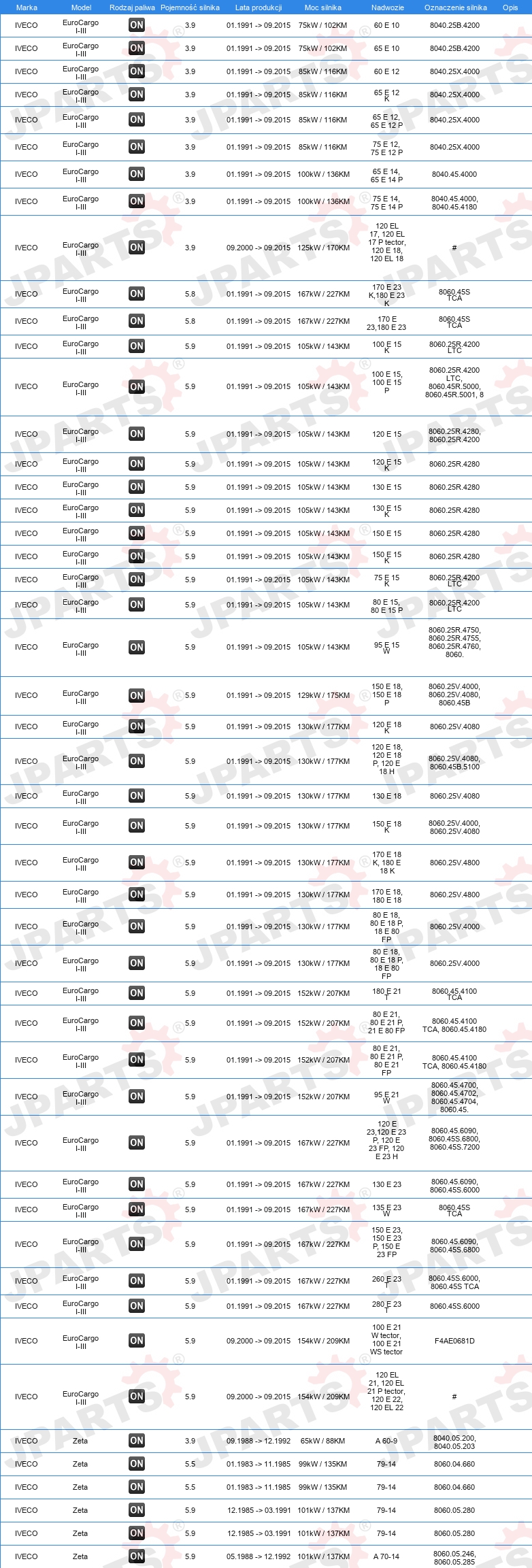 | Strona zabudowy: | od strony czołowej |