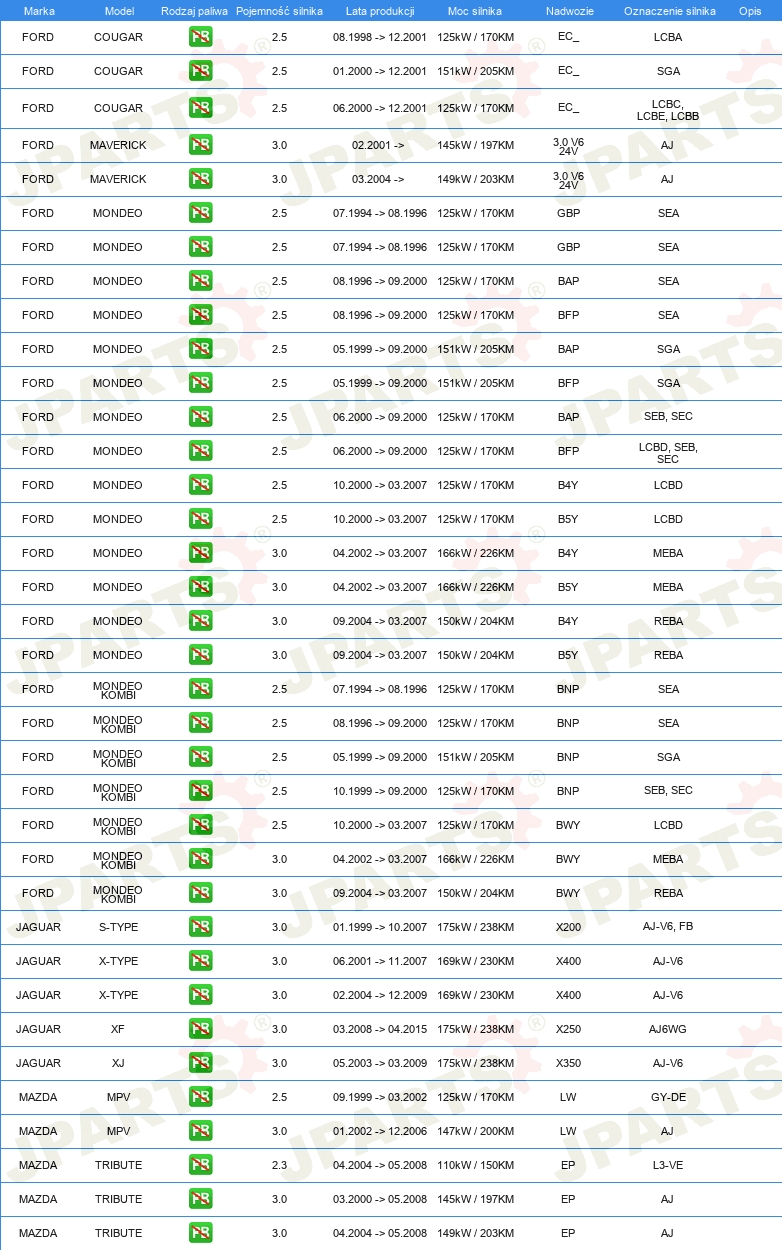 | Ochrona przeciwpyłowa: | z uszczelką wargową przeciwpyłową |