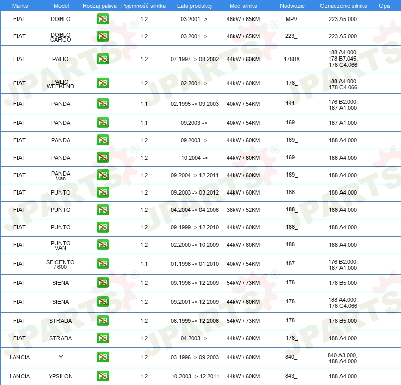 Informacje o części