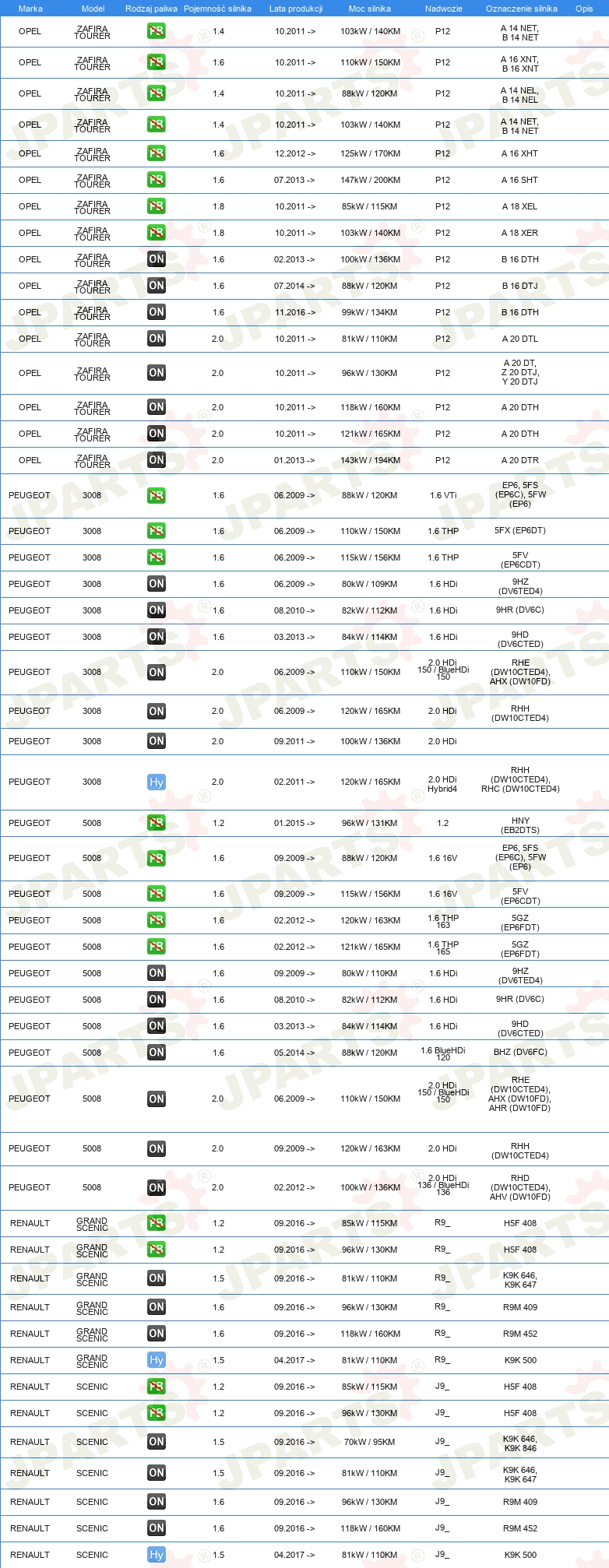| Pojazd z kierownicą po lewej /prawej stronie: | dla pojazdu z kierownicą z lewej strony |