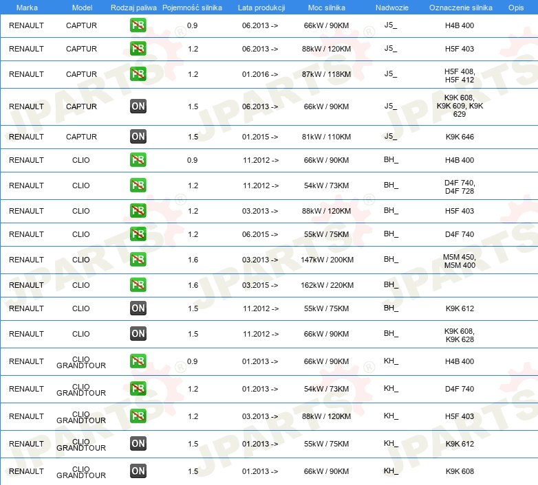 | Pojazd z kierownicą po lewej /prawej stronie: | dla pojazdu z kierownicą z lewej strony |