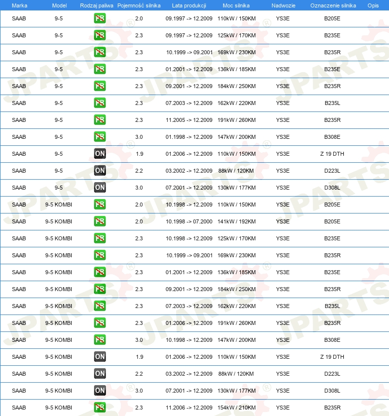 | Pojazd z kierownicą po lewej /prawej stronie: | dla pojazdu z kierownicą z lewej strony |