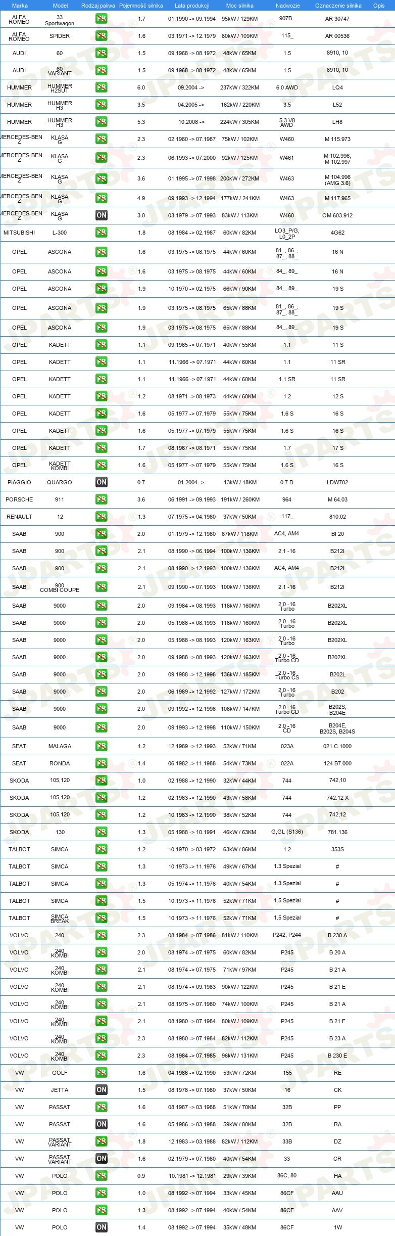 | Pojazd z kierownicą po lewej /prawej stronie: | dla pojazdu z kierownicą z lewej strony |