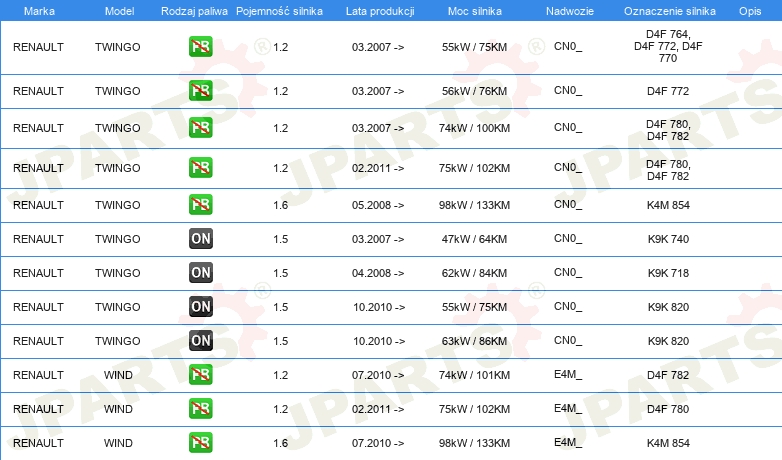 Informacje o części