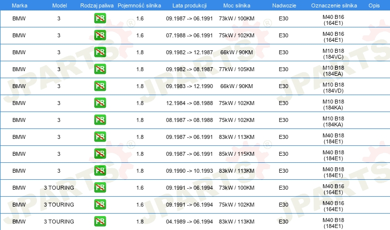 Informacje o części