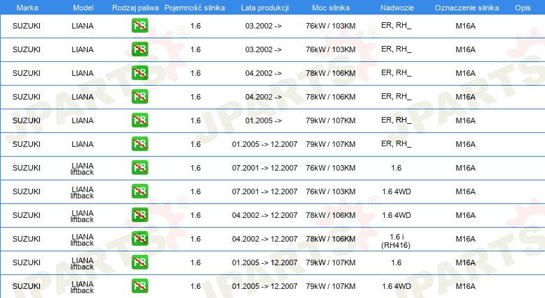 Informacje o części